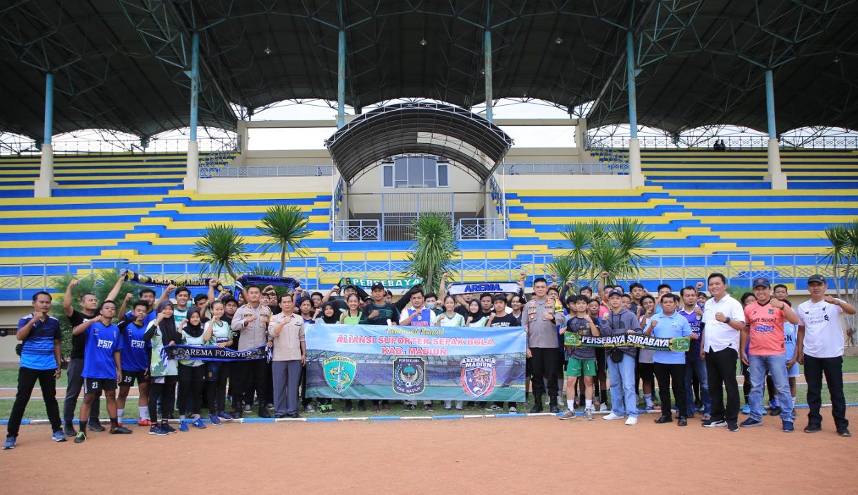 Turut hadir pada kegiatan ini Kepala Dinas Pariwisata Pemuda Dan Olahraga Kabupaten Madiun Anang Sulistijono, M.Si, Perwakilan suporter Bonek madiun, perwakilan suporter Aremania Madiun serta puluhan suporter yang ada di Kabupaten Madiun.