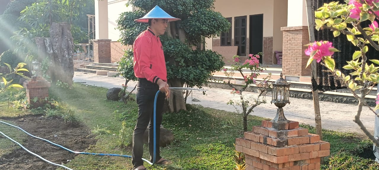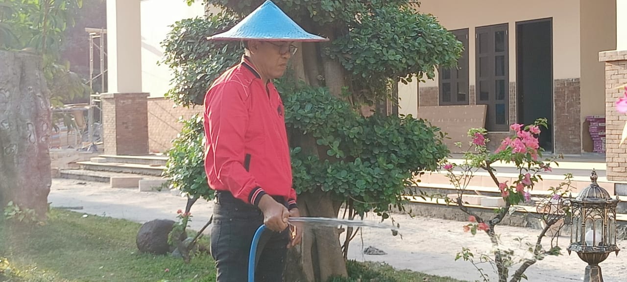 dari pantauan mataramanews ristu tampak semangat sekali merapikan serta menyiram beberapa tanaman yang ada dihalaman depan posko perjuangan yang ada di desa babadan lor balerejo madiun, bahkan karena saking rajinnya wakil rakyat ini merawat tanaman di halaman posko perjuangan warga setempat sempat bercanda menyebut mbah Tu sapaan akrab ristu nugroho beralih profesi menjadi juru taman.