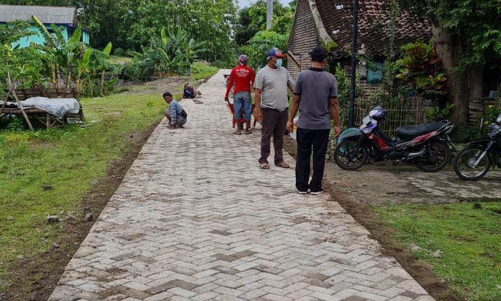 pavingisasi jalan lingkungan sepanjang 210 meter ini menelan anggaran kurang lebih 100 juta yang bersumber dari APBD pemerintah kabupaten Madiun tahun 2021