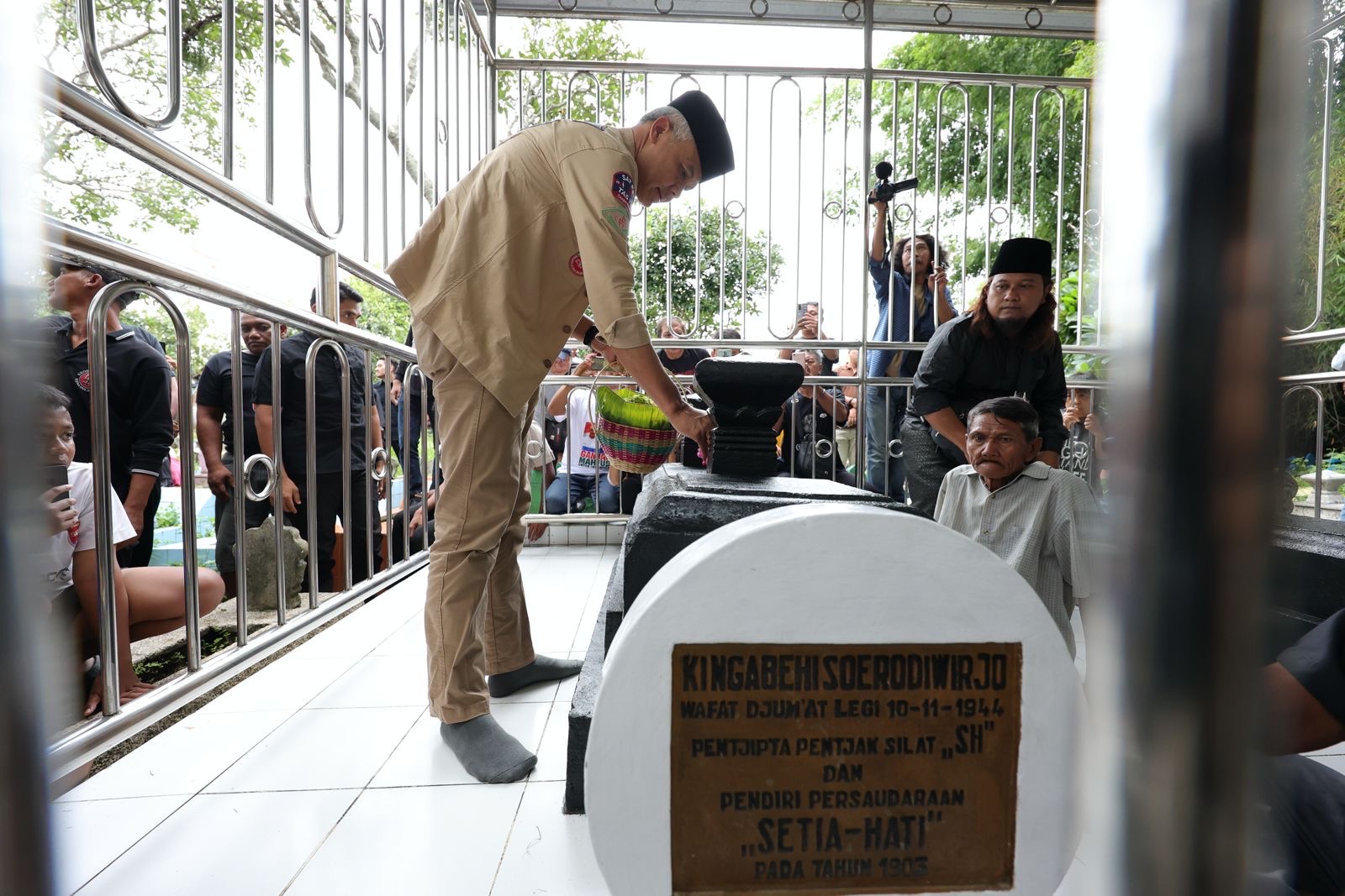 Madiun, Mataramanews.com – Calon presiden (Capres) 2024 nomor urut 3, Ganjar Pranowo, menyempatkan ziarah ke makam pendiri pencak silat Persaudaraan Setia Hati, Ki Ngabehi Soerodiwirjo di sela kunjungannya ke Madiun, Kamis (18/1/2024). Di makam itu, Ganjar memanjatkan doa bersama ratusan masyarakat yang antusias menyambutnya.