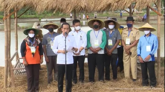“Saya rasa ini adalah sebuah tambahan produktivitas dari petani yang dihasilkan. Karena memang banyak sekali bendungan yang telah selesai dibangun pada tahun-tahun sebelumnya, ini mulai kelihatan hasil dari produktivitas kenaikan di petani,” kata Jokowi usai menanam padi dengan petani di Trenggalek, Selasa (30/11/2021).