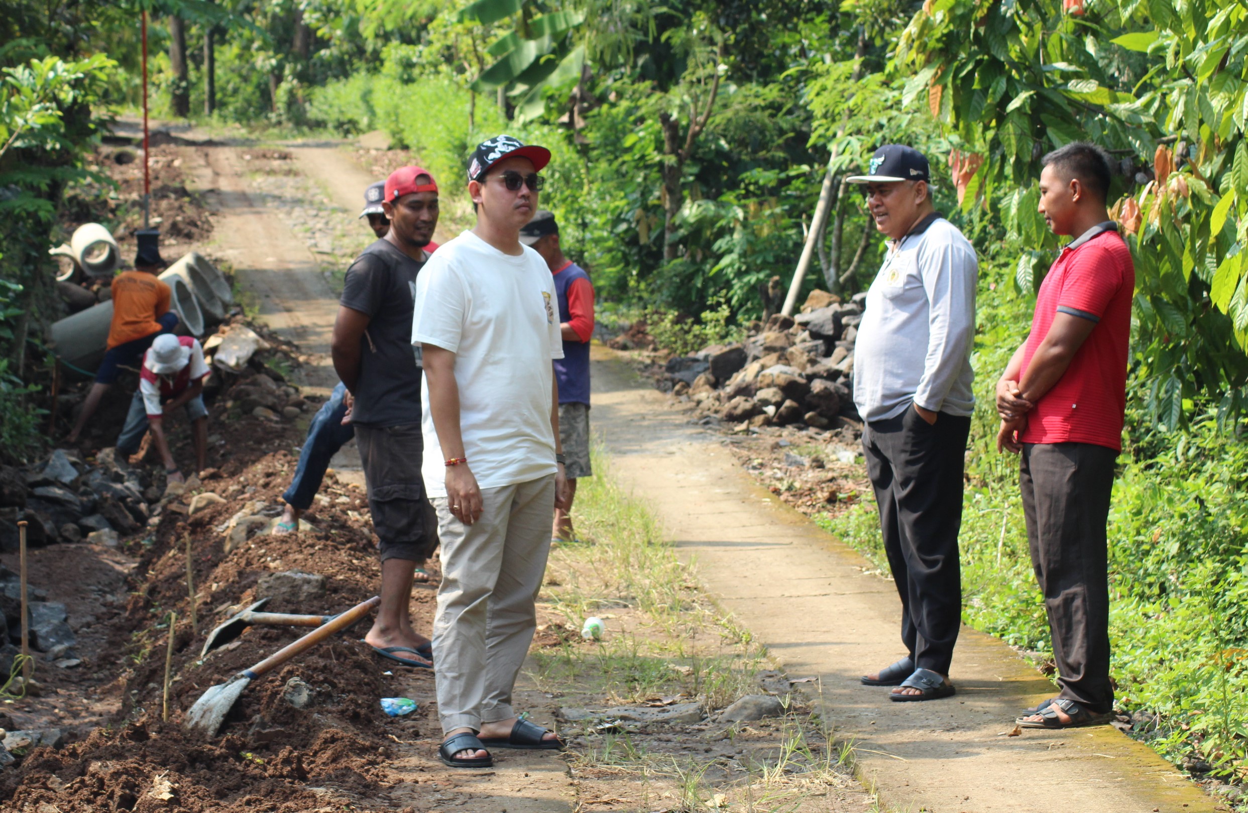 Didampingi Putranya Sandhika R Ferryantiko Fery tampak begitu sumringah saat menyusuri Drainese (saluran air) yang sedang dikerjakan oleh warga masyarakat setempat.