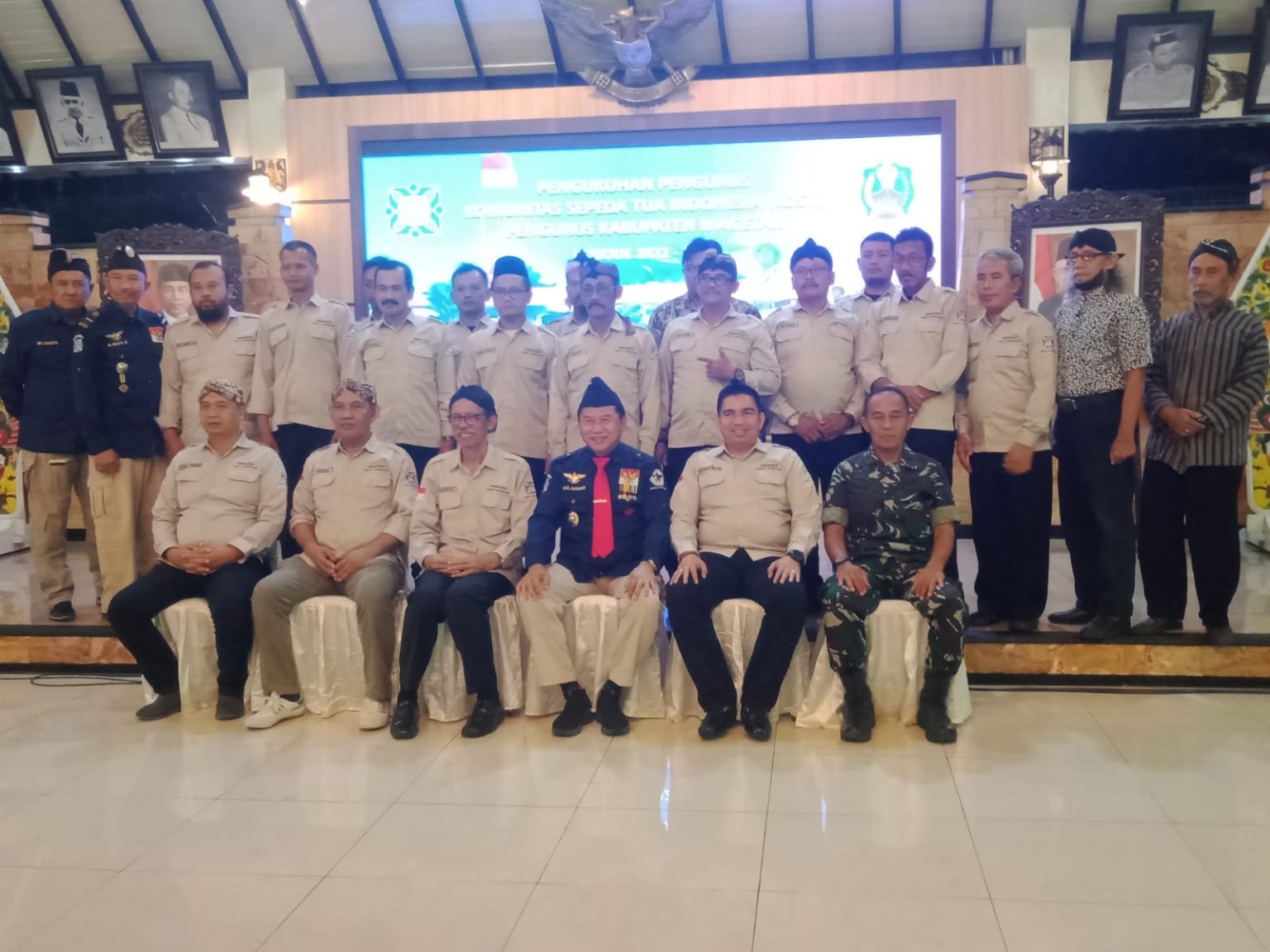 Magetan, mataramanews.com – Bupati Magetan, Suprawoto, melantik dan mengukuhkan Pengurus Komunitas Sepeda Tua Indonesia (KOSTI) Kabupaten Magetan, di pendopo Surya Graha, Sabtu (28/01/2023).