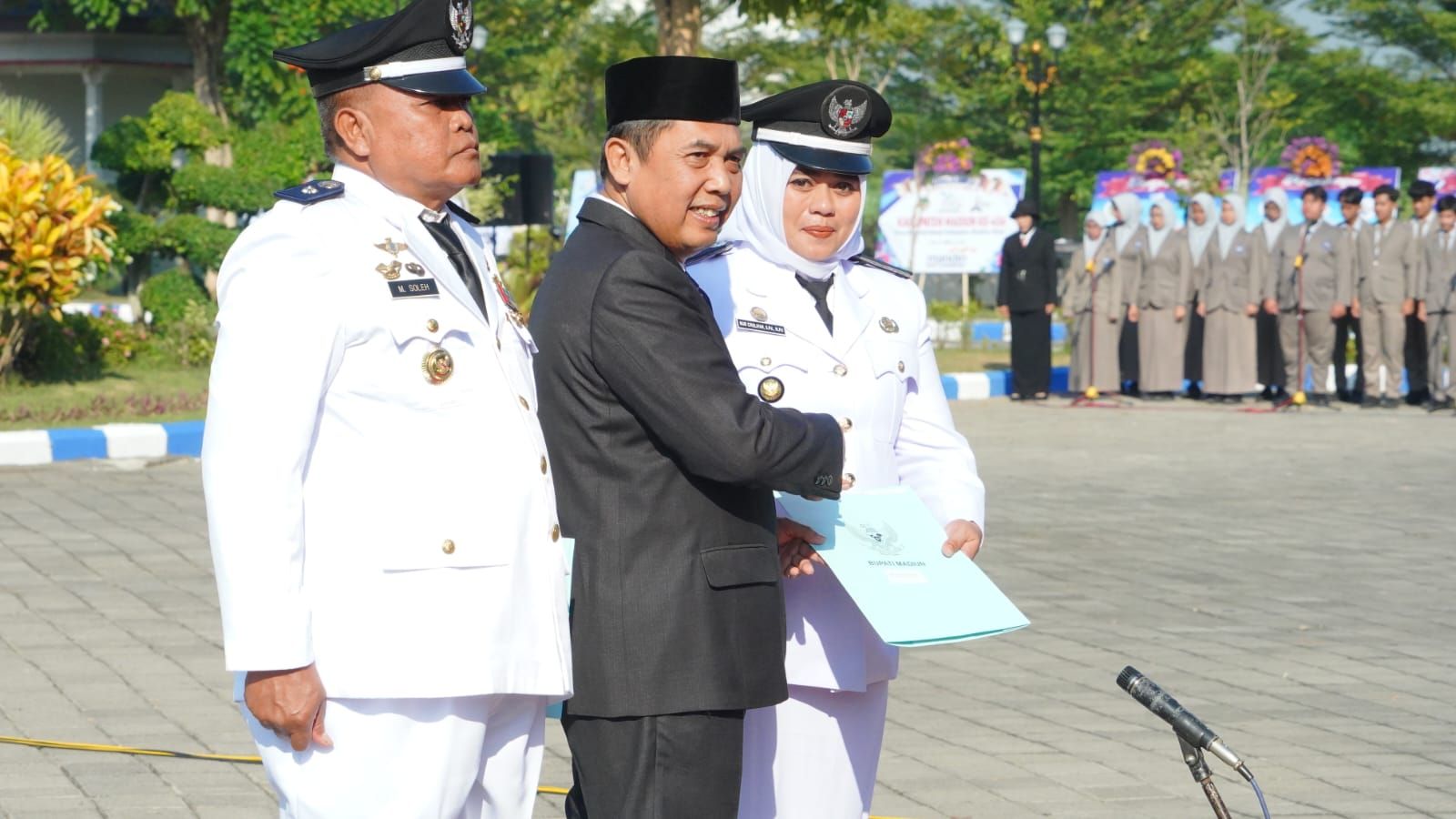 Madiun, Mataramanews.com – Penjabat Bupati Madiun mengukuhkan dan menyerahkan Surat Keputusan (SK) Perpanjangan Jabatan kepada 192 Kepala Desa se-Kabupaten Madiun dalam upacara peringatan Hari Jadi Kabupaten Madiun Ke 456, di Pendopo Ronggo Djoemeno Caruban Madiun, Kamis (18/7/2024).