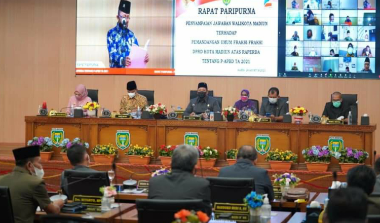 MADIUN,mataramanews.com – Eksekutif dan Legislatif Kota Madiun, nampak serius dalam menanggulangi Covid-19. Salah satunya ditunjukkan melalui tahapan penyusunan rancangan Perubahan Anggaran Pendapatan dan Belanja Daerah (P-APBD) 2021. Tak hanya kompak mempercepat penyusunan, sederet pertanyaan dan masukan terkait penanganan pandemi dari fraksi-fraksi di DPRD turut dijawab oleh Wali Kota Madiun Maidi.