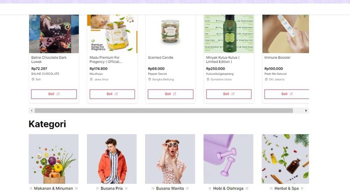 Konsumen bisa mencari barang yang diinginkan di kolom pencarian. Setelah menemukan produk yang diminati, tekan tombol ‘beli’. Lalu konsumen akan diarahkan ke sejumlah marketplace yang menjual produk-produk tersebut.